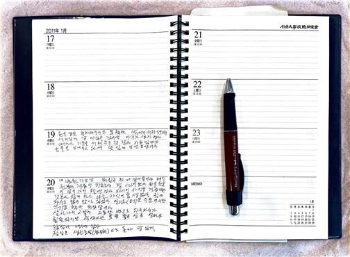 박완서 작가의 임종 전 마지막 일기인 2011년 1월 19-20일 일기. 서울대 제공 |