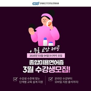 한편 종합미용면허증 과정 1학기 4기수 모집은 3월 4일까지 진행되며, 개강은 3월 5일 바로 시작된다. 자세한 모집 일정과 교육 과정 안내는 한국열린사이버대학교 평생교육원 공식 홈페이지를 통해 확인할 수 있다.