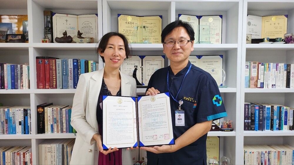 왼쪽부터 극동대 간호학과 이영신 교수, 새로운경기도립정신병원 윤영환 원장. 사진=극동대 제공 |