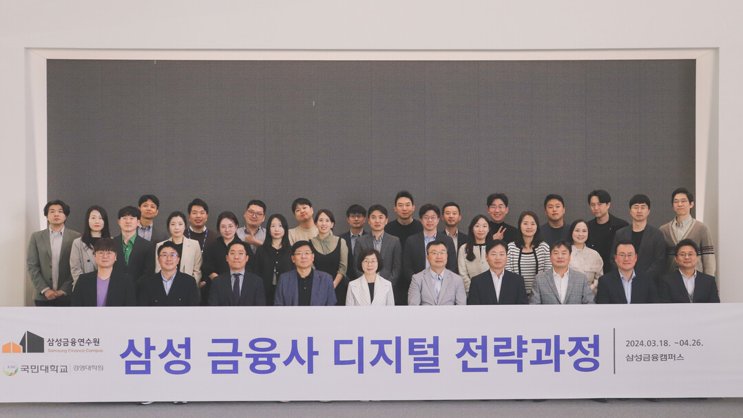 2022년부터 시작된 ‘삼성 금융사 디지털 전략과정’은 삼성금융연수원과 국민대 경영대학원이 산학협력으로 공동 개발하고 운영하고 있는 석사 수준의 교육과정으로서, 디지털 기획부터 디지털 개발, 디지털 마케팅까지 디지털 업무 프로세스 전반을 학습하고 이를 현업에 바로 적용하는 프로젝트 중심의 실무활용 교육으로 구성된다.