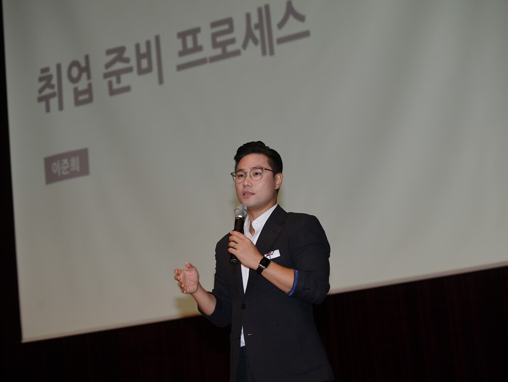 이준희 대표는 최고인사책임자(CHO) 출신으로 면접관의 질문의 의도와 평가 가이드를 특강을 통해 전달했다. 자기소개서 작성과 면접 준비를 각각 5단계로 나누고, 단계별로 이해하기 쉽게 설명했다. 학생들이 실제 취업 준비에 활용할 수 있도록 답변 템플릿도 제공했다.