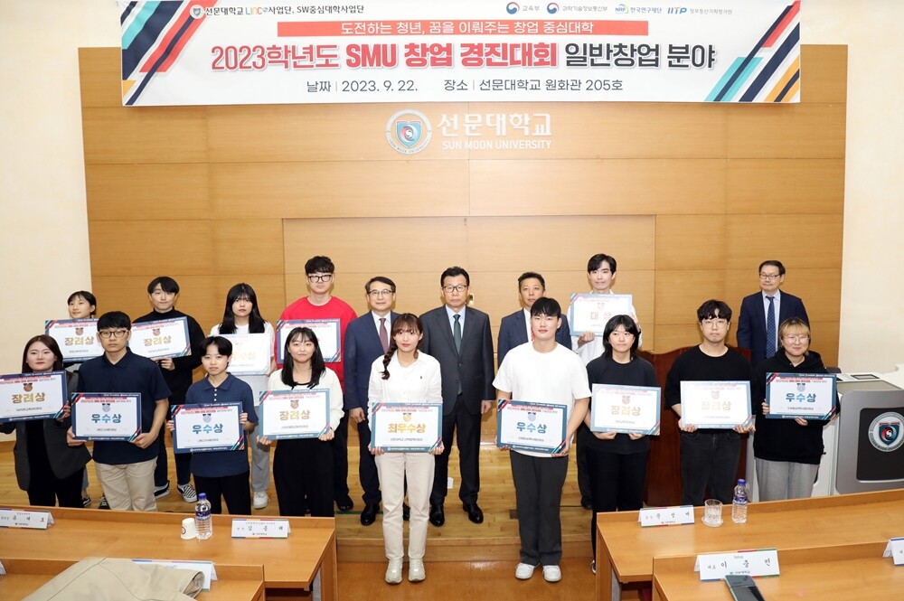 [대학저널 온종림 기자] 선문대학교가 22일 아산캠퍼스에서 개최한 ‘2023학년도 SMU 창업 경진대회’를 성공리 마무리했다. 이번 대회는 ‘노력하는 예비 청년 창업자’를 주제로 진행됐다.