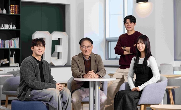 ‘2025 캠퍼스 특허 유니버시아드 대회’에서 대통령상을 수상한 한기대 학생들. 왼쪽부터 유재윤 학생, 진경복 교수, 김현수 학생, 이가은 학생. 사진=한기대 제공 |