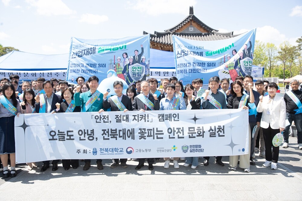 전북대 안전보건관리부는 이틀 동안 고용노동부 전주지청과 안전보건공단 전북지역본부, 안전문화실천추진단 등과 함께 ‘안전, 절대 지켜!’라는 주제로 캠페인을 진행했다고 밝혔다.
