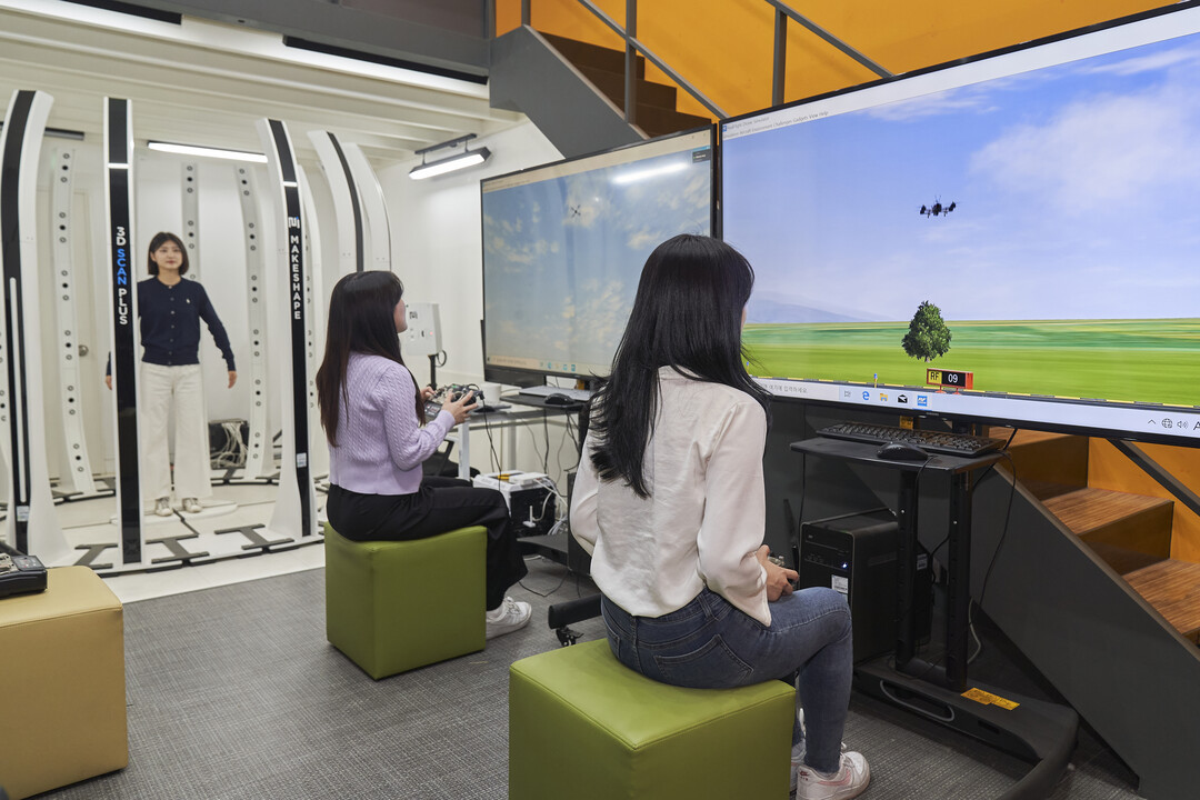 순천향대 드론 스튜디오에서 학생들이 드론 교육을 체험하고 있다. 사진=순천향대 제공 |