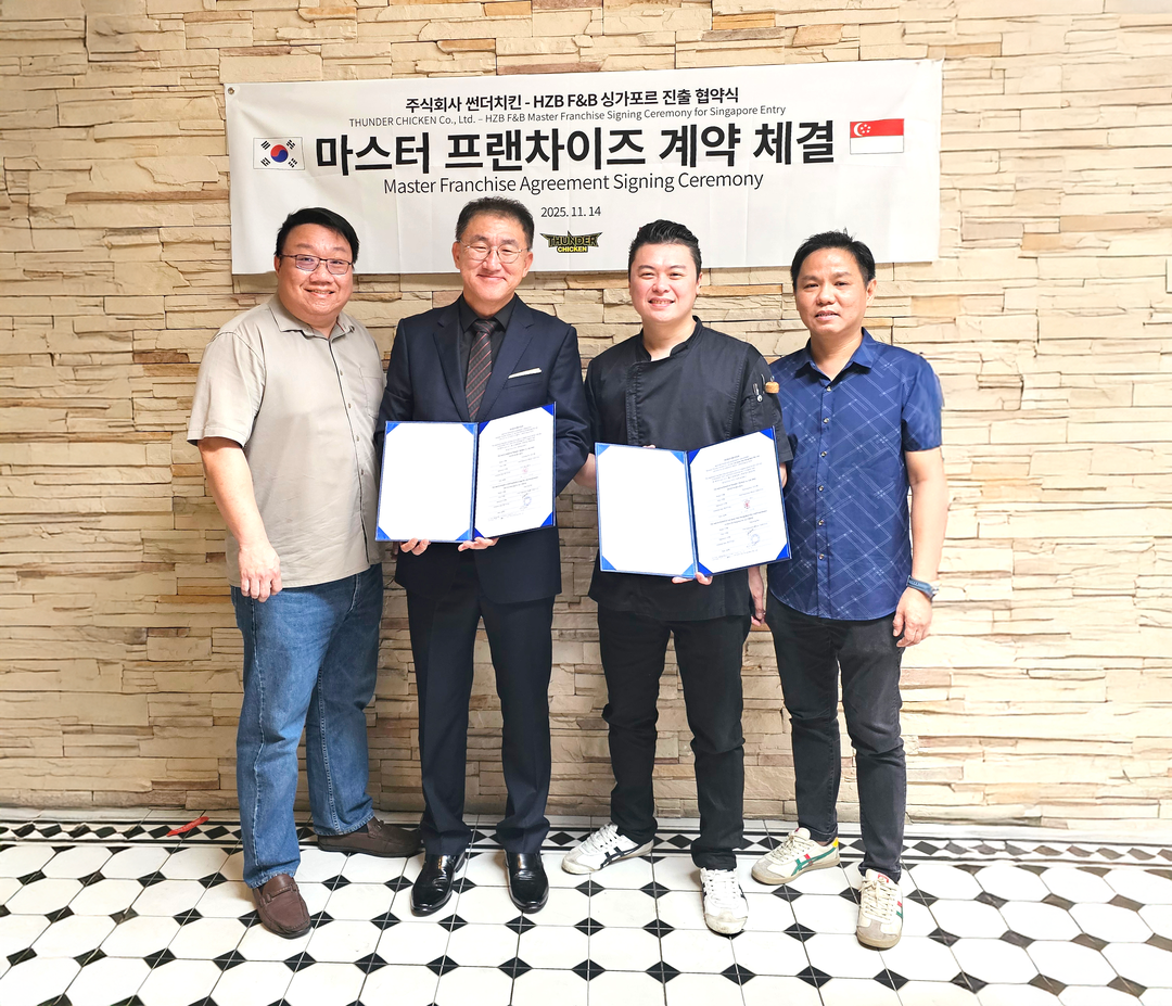 싱가포르는 동남아 국가 중에서도 외식 소비 비중이 가장 높은 시장으로 꼽히며, 배달 중심의 소비 문화와 K-푸드의 대중화가 빠르게 확산되고 있는 핵심 거점이다. 이번 계약을 통해 썬더치킨이 해당 시장의 선점 기회를 잡았다는 평가가 나오고 있다.