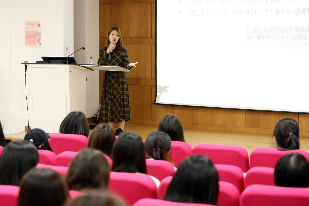 [대학저널 이선용 기자] 성신여자대학교가 16일 돈암 수정캠퍼스 성신관 110호에서 SF 소설 분야에서 국내외 대형 팬덤을 형성하고 있는 김초엽 작가를 초청, ‘저자와의 만남’ 행사를 개최했다.