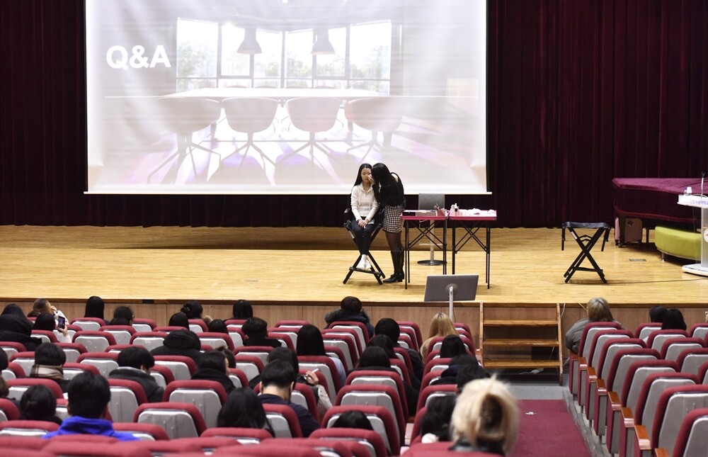 보이즈플래닛 메이크업 총괄 디렉팅과 스트릿댄스 걸스파이터2 메이크업을 담당한 아티스트 경빈은 메이크업 시연을 직접 선보이며 신입생에게 어울리는 메이크업, 아이돌 메이크업의 최신 트렌드 등을 공유했다. 이어 반세나 재능대 뷰티스타일리스트과 교수는 헤어디자인을 중심으로 다양한 뷰티 컨설팅 사례를 소개했다.