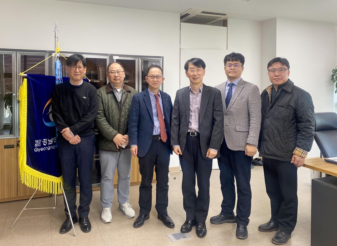 경남대와 경남테크노파크 관계자들이 간담회 후 기념촬영을 하고 있다. 사진=경남대 제공