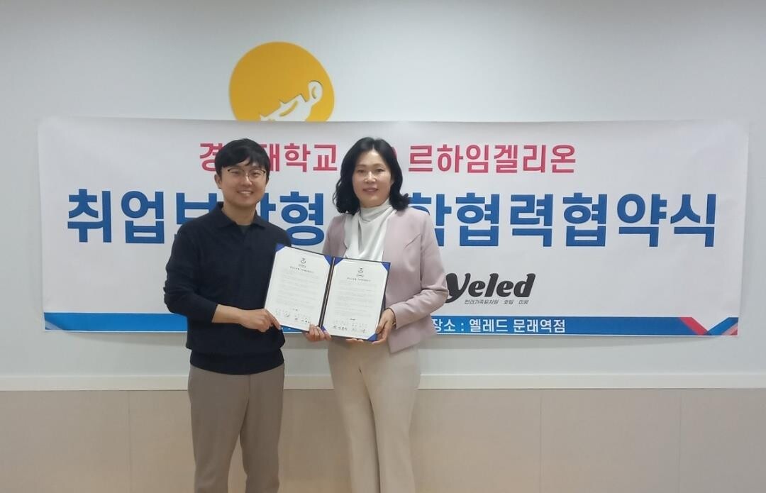[대학저널 온종림 기자] 경복대학교 반려동물보건과가 지난 19일 옐레드 문래역점에서 ㈜르하임겔리온와 취업보장형 산학협력을 체결했다.