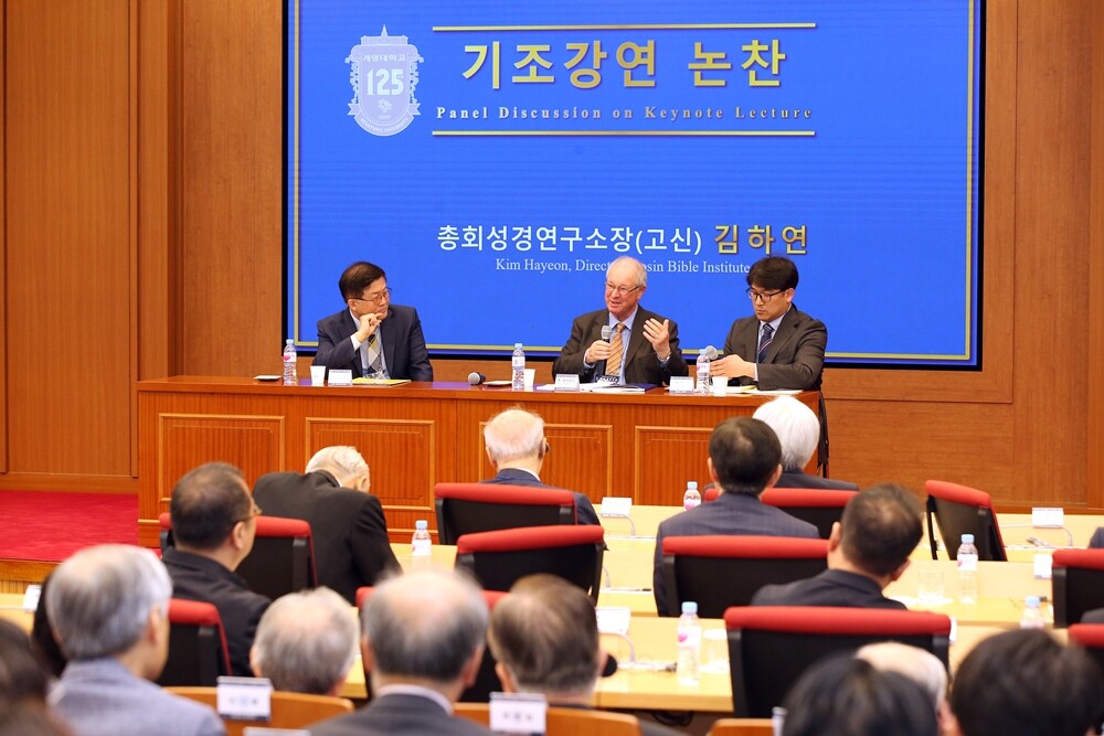 기조 강연은 휴 윌리암슨 영국 옥스퍼드대 명예교수가 ‘두루마리와 서기관: 얼마나 보존되었을까’를 주제로 초기 선경에서부터 다양한 언어로 번역되어 온 성경에 대한 해석과 의미를 두고 연구를 지속해야 한다고 강조했다. 이후 김하연 총회성경연구소장의 기조강연 논찬이 있었다. 제1강연은 정중호 계명대학교 기독교학과 명예교수가‘한국 성경 300년-번역과 해석의 역사’를 주제로, 제2강연은 민영진 전 대한성서공회 총무가‘우리말 성경-번역과 수용의 역사’를 주제로 발표를 이어갔다. 강연에 대한 논찬은 민경진 부산장신대학교 교수와 김창락 전 한신대학교 교수가 맡았다.