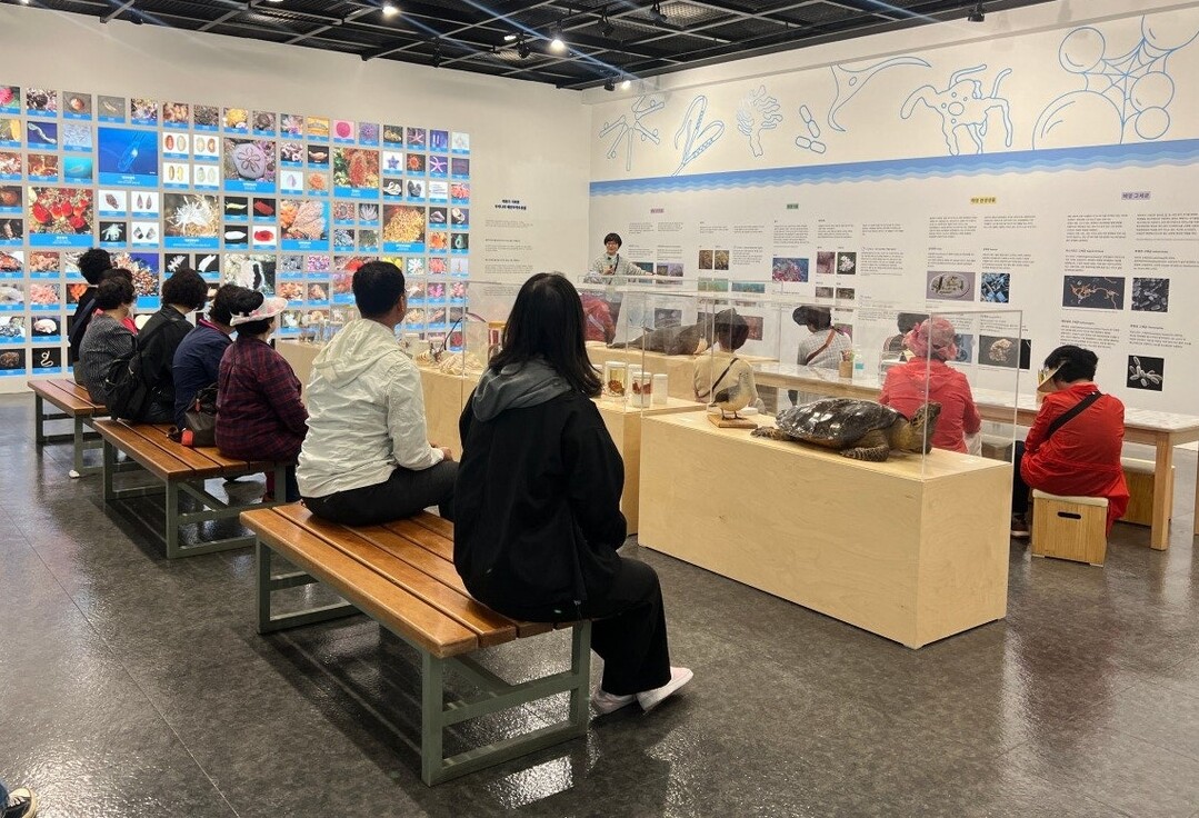 먼저 관내 어르신과 초등학생을 위한 ‘바다가 들려주는 이야기’ 프로그램은 기획전 전시해설과 함께 거북손, 해면, 멍게 등 다양한 해양생물 표본을 직접 만지고 관찰하며, 바닷속 해양생물을 창의적으로 표현해 보는 체험교육이다.