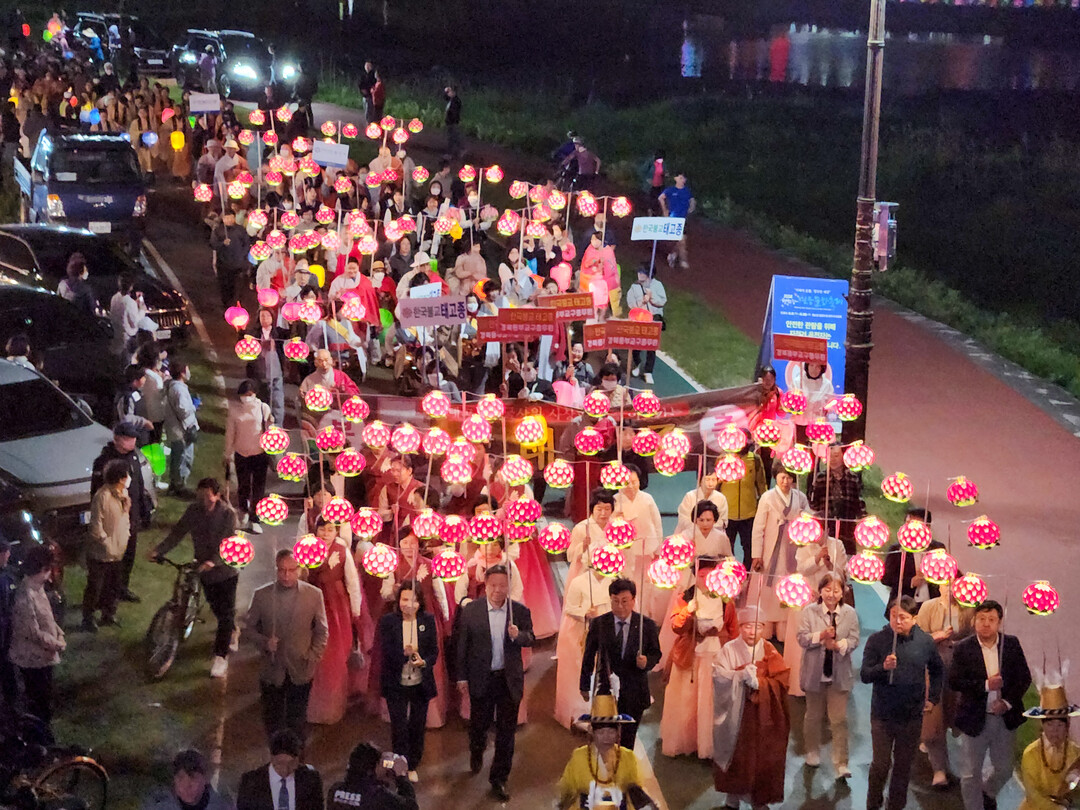 ‘2024 형산강 연등문화축제’ 참가자들이 제등행렬을 하고 있다. 사진=동국대 WISE캠퍼스 제공 |