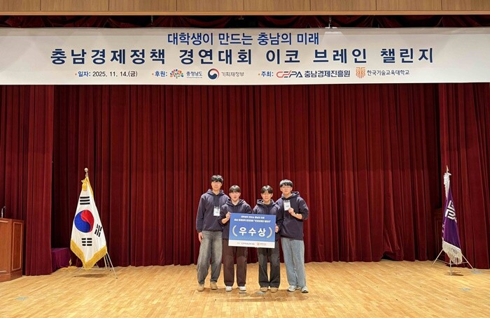 [대학저널 온종림 기자] 한국기술교육대학교(KOREATECH) 학생들이 최근 열린 2025 충남경제정책 경연대회 ‘이코 브레인 챌린지’에서 각각 우수상(충청남도의회 의장상)과 장려상(충남경제진흥원장상)을 수상했다.