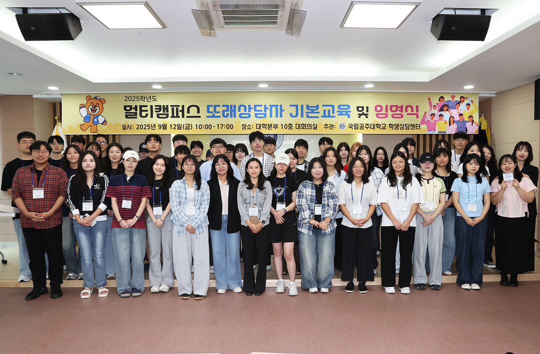 [대학저널 이선용 기자] 국립공주대학교 학생상담센터는 12일 공주캠퍼스 대학본부 10층 대회의실에서 3개 캠퍼스(공주·천안·예산) 또래상담자로 선발된 학생들을 대상으로 「2025학년도 멀티캠퍼스 또래상담자 양성 프로그램」 임명식과 기본교육을 개최했다.