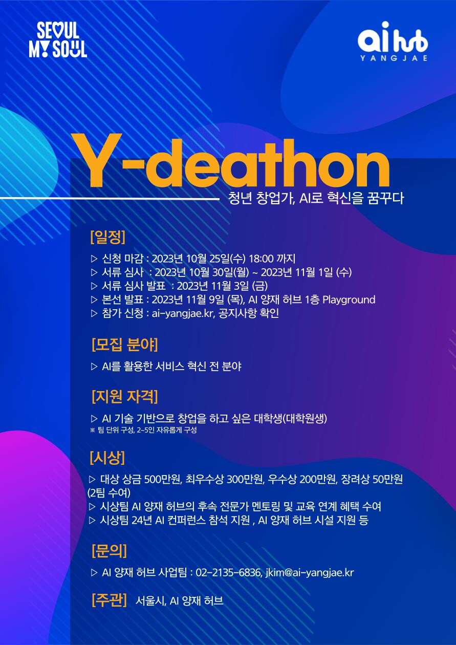 [대학저널 이선용 기자] 서울시가 전국 주요 대학 인공지능 전공 대학생, 창업동아리를 대상으로 ‘AI 동아리 아이디어톤 대회’를 개최한다.