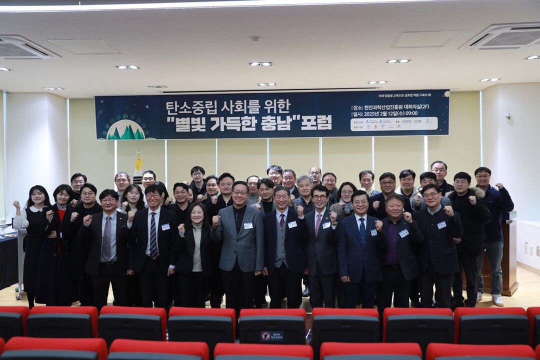 탄소중립 사회를 위한 ‘별빛 가득한 충남’ 포럼 참석자들이 기념촬영을 하고 있다. 사진=남서울대 제공 |