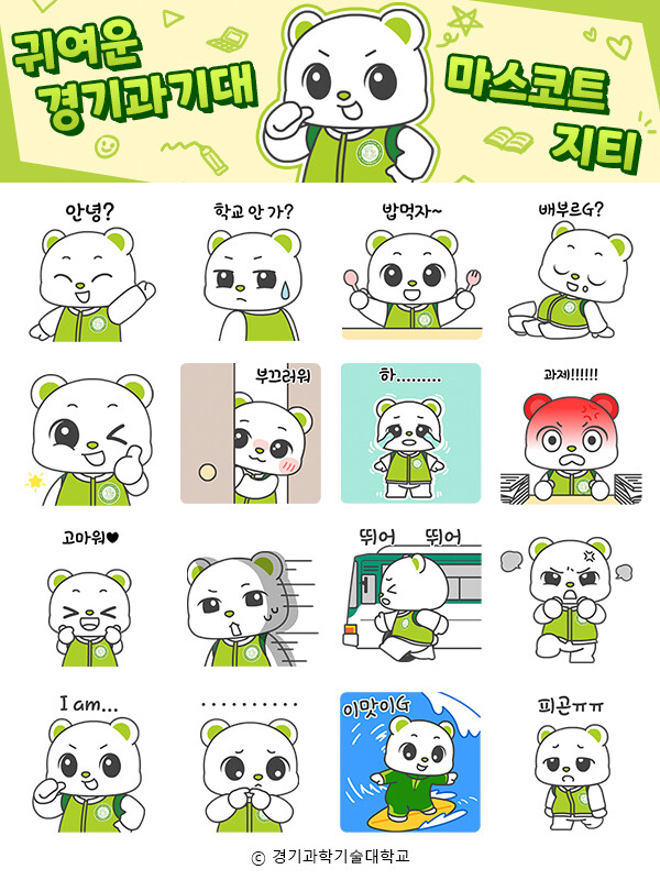 경기과학기술대학교는 대학 마스코트 지티(G.T) 이모티콘. |