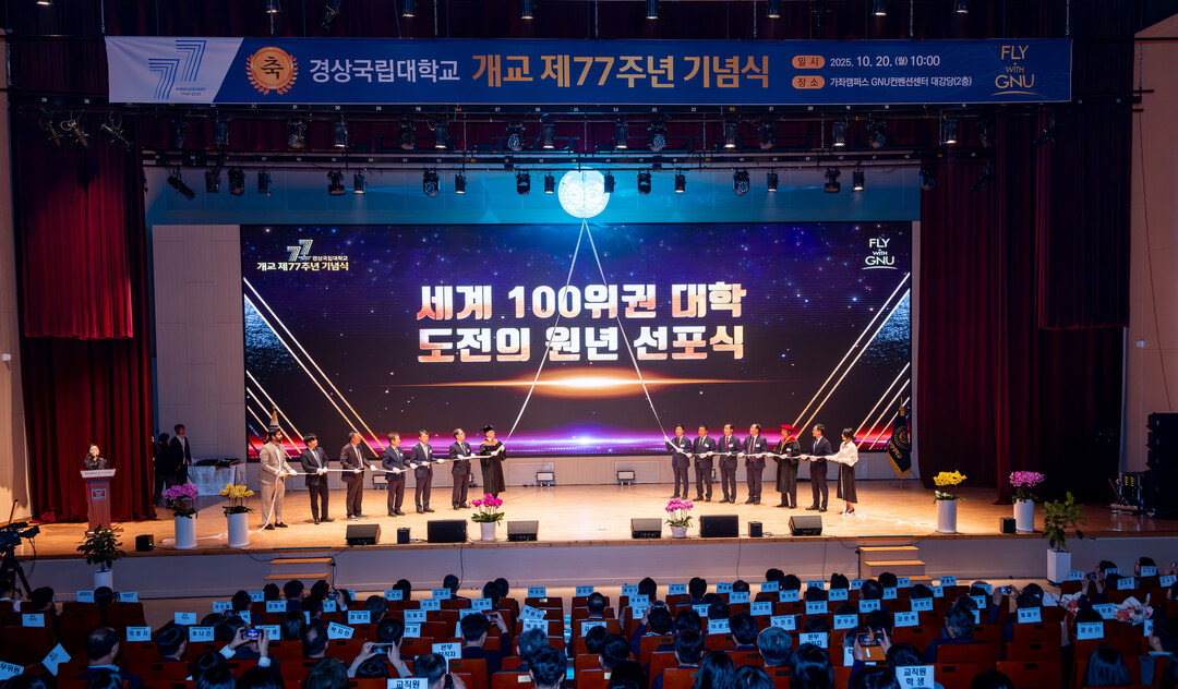 [대학저널 이선용 기자] 경상국립대학교는 10월 20일 오전 10시 가좌캠퍼스 GNU컨벤션센터 2층 대강당에서 개교 77주년 기념식을 개최했다.