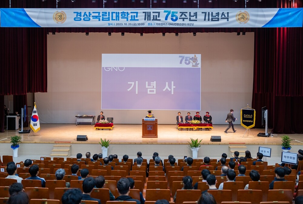 [대학저널 온종림 기자] 경상국립대학교가 개교 75주년을 맞았다. 경상국립대는 20일 가좌캠퍼스 GNU컨벤션센터 대강당에서 제75주년 개교기념식을 개최했다.