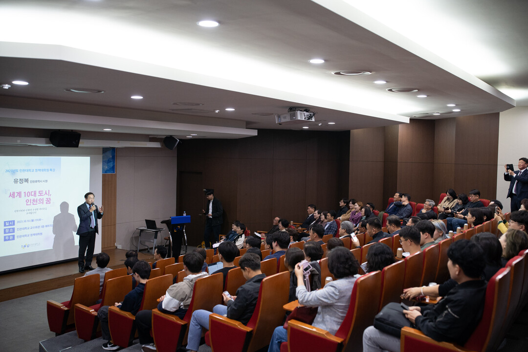 [대학저널 이선용 기자] 인천대학교 정책대학원이 16일 유정복 시장을 초청, 최고관리자과정 특강을 개최했다