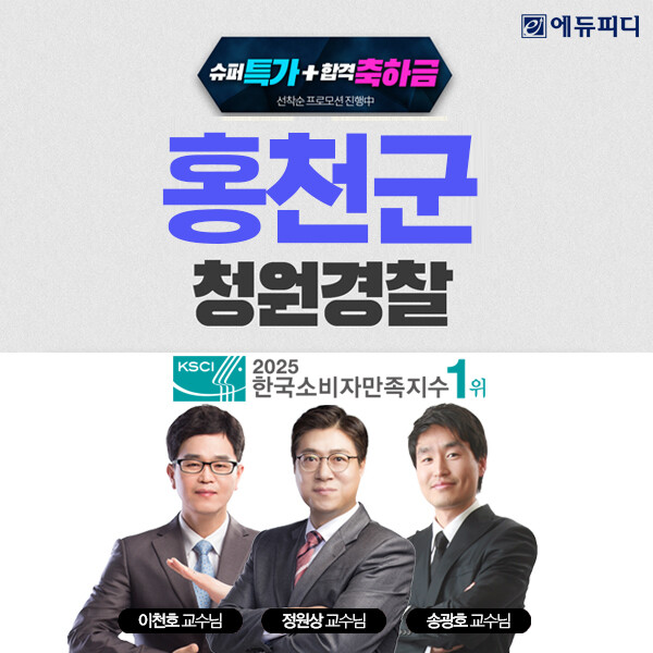 종합교육기업 에듀피디는 10월 18일 예정된 강원도 홍천군 청원경찰 임용시험의 서류·필기·체력 ·면접(인성) 시험을 모두 준비할 수 있는 ‘합격패키지’ 인강을 오픈하고 수강생을 모집한다고 16일 밝혔다.