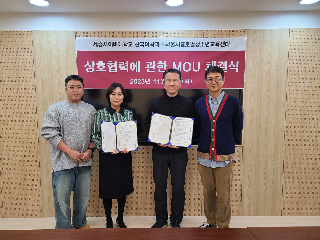 [대학저널 이선용 기자] 세종사이버대학교 한국어학과가 최근 서울시 글로벌청소년교육센터와 상호협력을 위한 MOU를 체결했다.