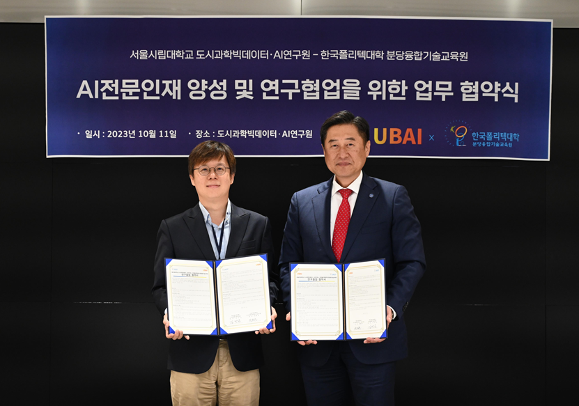 [대학저널 온종림 기자] 서울시립대학교 도시과학빅데이터·AI 연구원이 한국폴리텍대 분당융합기술교육원과 11일 AI 전문인재 양성 및 연구협업에 대한 협약을 체결했다.