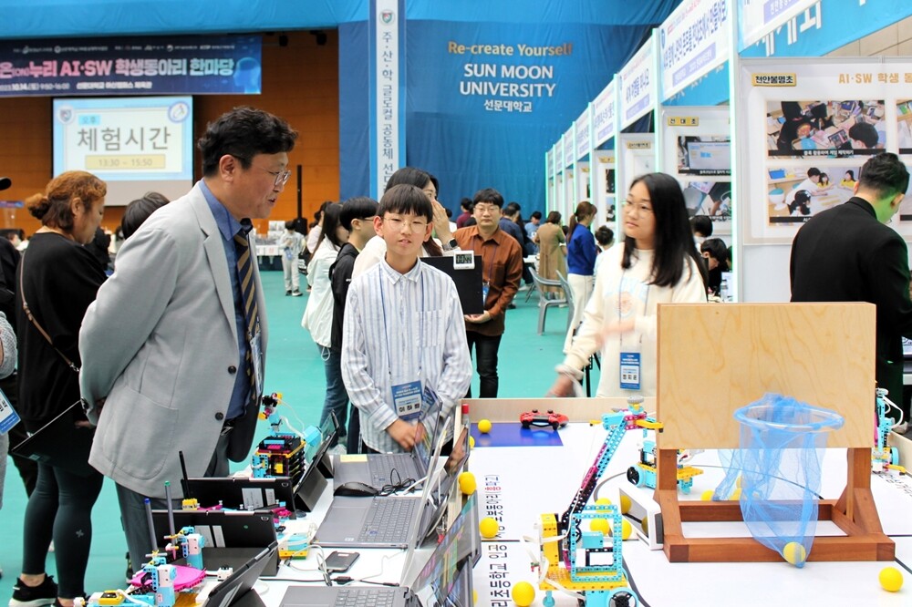 한마당에는 학생 동아리 성과를 공유하는 ’공유마당‘과 AI‧SW를 체험할 수 있는 ’체험마당‘ 그리고 선문대와 충남교육청의 ’전시마당‘으로 나눠 진행됐다. 참가자들은 학생 성과물을 관람하고 AI‧SW 관련한 교육 체험을 했다. 선문대와 충남교육청의 미래 디지털 교육에 관한 세션에는 학부모들의 관심이 집중됐다.