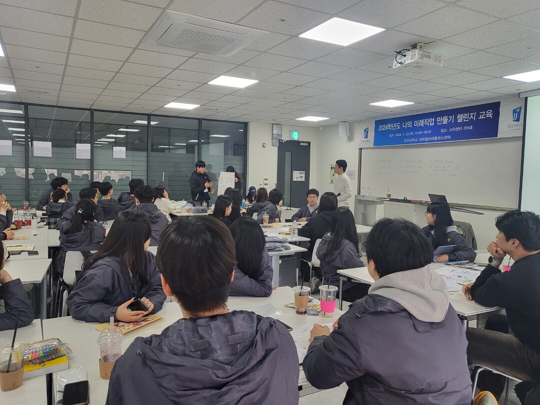 [대학저널 이선용 기자] 전주대학교 대학일자리플러스센터가 지난 23일 도내 청년 68명을 대상으로 신직업(창직) 탐색을 통해 미래지향적 새로운 취업경로를 설계하는 ‘나의 미래 직업 만들기 챌린지’ 교육을 스타센터 204호에서 운영했다고 밝혔다.