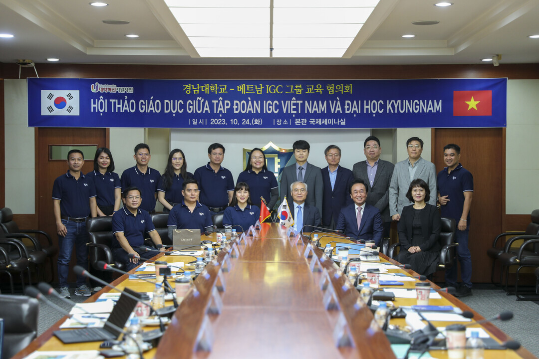 이번 교육 협의회에는 박재윤 교학부총장, 최호성 총장특별보좌역, 처장단 등 경남대 보직자 9명과 즈엉 툭 링 CEO, 띵 황 찌에우 COO, 팜 띠엔 쭝 CBDO 등 베트남 IGC 그룹 관계자 10명이 참석했다.