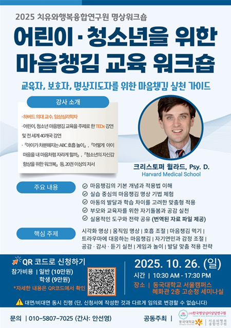 또한, 윌라드 교수는 “스트레스와 불안이 가득한 시대일수록 어린이와 청소년들에게 마음챙김은 삶을 지탱하는 힘이 된다”며, “교사와 부모가 먼저 마음챙김을 배우고 실천할 때 아이들의 회복탄력성과 연민이 자연스럽게 자라난다”고 강조한다.