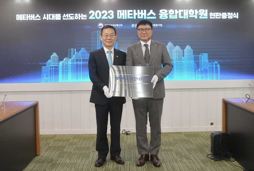 [대학저널 온종림 기자] 건국대학교가 올해 메타버스 융합대학원 운영대학에 신규 선정돼 13일 현판을 전달받았다.