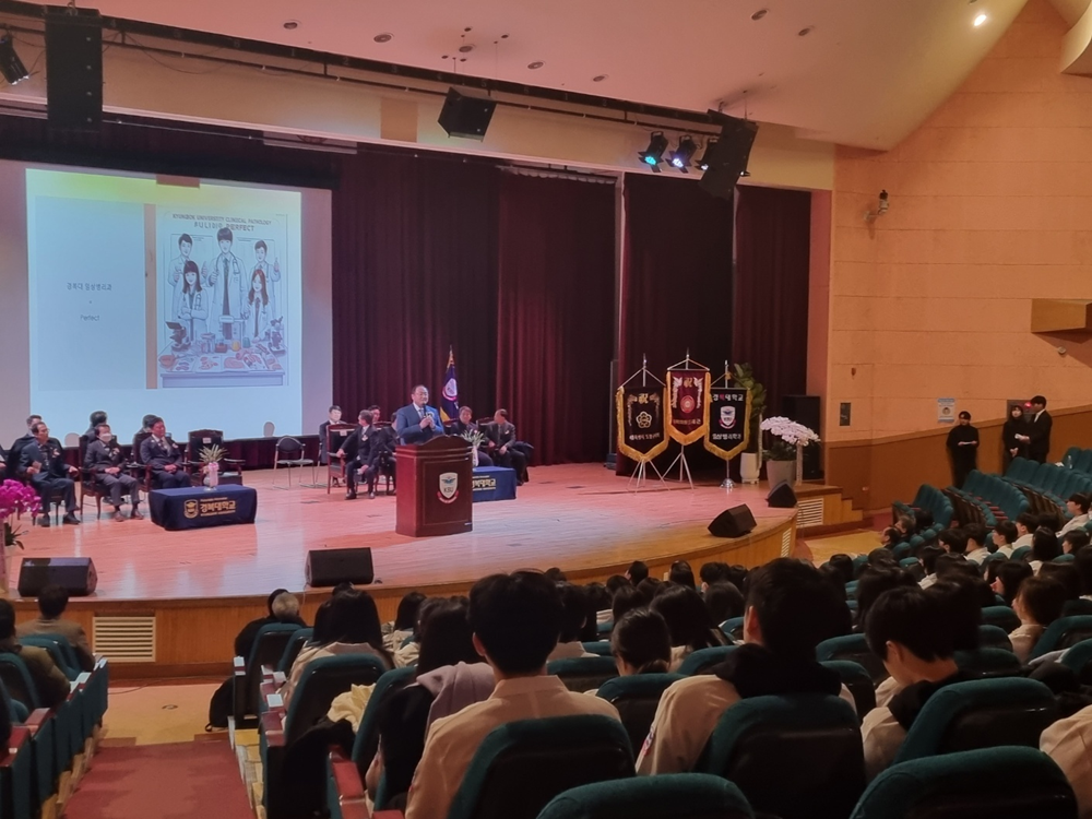 전지용 경복대 총장은 축사에서 “자랑스럽게도 4년 연속 국가고시 합격 100%와 전국 수석을 배출한 전통과 업적을 축하하고 이러한 성과는 학교와 교수진, 학생들의 노력과 헌신의 결과로 이루어진 것이며, 이를 향한 열정과 노력에 박수을 보낸다”며 “앞으로 임상병리사의 사명을 토대로 직업인으로서 미래를 위한 목표를 설정하고, AI와 함께하는 임상병리사로 미래 보건의료의 핵심이 되어줄 것”을 당부했다.