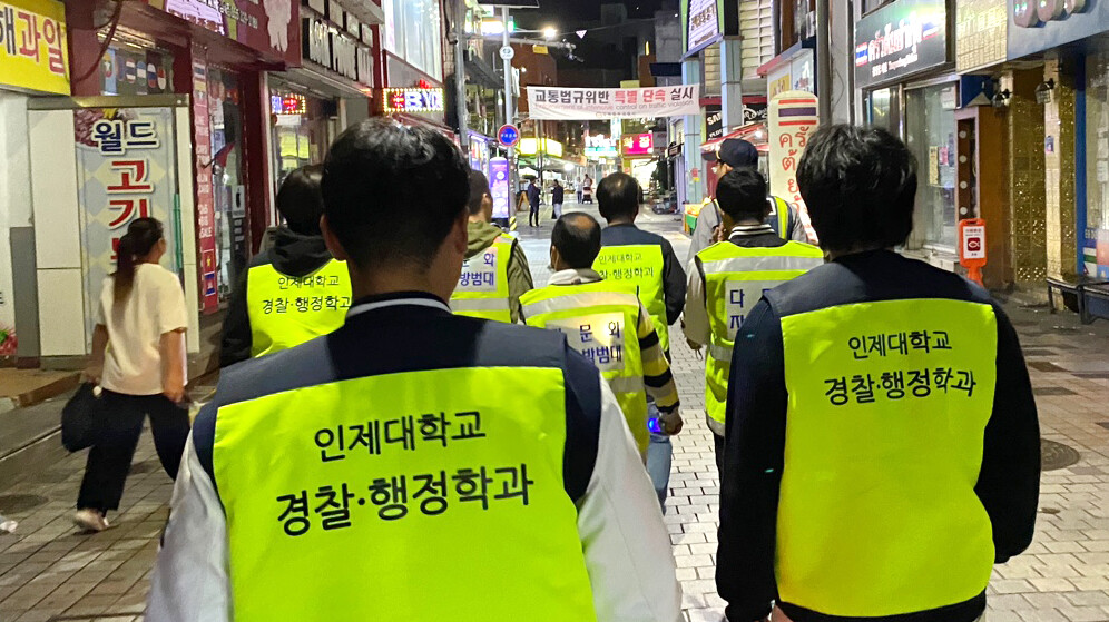 [대학저널 이선용 기자] 인제대학교 경찰·행정학과 학생들로 구성된 자율방범대가 17일 저녁 야간 합동 순찰에 나섰다.