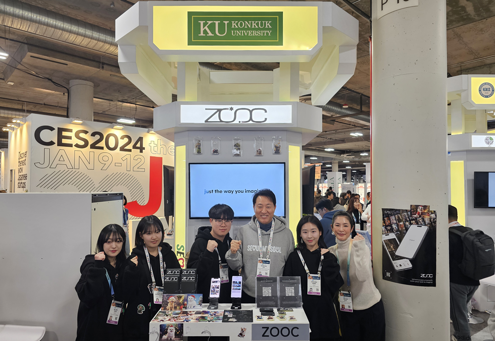 11일(현지시각) 미국 라스베이거스 컨벤션센터에서 열린 'CES 2024'에서 오세훈 서울시장(가운데)과 유자은 건국대학교 이사장(맨 오른쪽)이 CES 서울통합관내 건국대 학생들이 창업한 반려동물 AI 캐릭터 기업 ZOOC(쭉) 부스를 방문해 학생들을 격려하고 있다. 건국대는 이번 CES에 학생 창업기업 3곳과 서포터즈 등 재학생 14명이 서울경제진흥원(SBA)의 지원으로 참가했다.11일(현지시각) 미국 라스베이거스 컨벤션센터에서 열린 'CES 2024'에서 오세훈 서울시장(가운데)과 유자은 건국대학교 이사장(맨 오른쪽)이 CES 서울통합관내 건국대 학생들이 창업한 반려동물 AI 캐릭터 기업 ZOOC(쭉) 부스를 방문해 학생들을 격려하고 있다. 건국대는 이번 CES에 학생 창업기업 3곳과 서포터즈 등 재학생 14명이 서울경제진흥원(SBA)의 지원으로 참가했다. 사진=건국대 제공 |