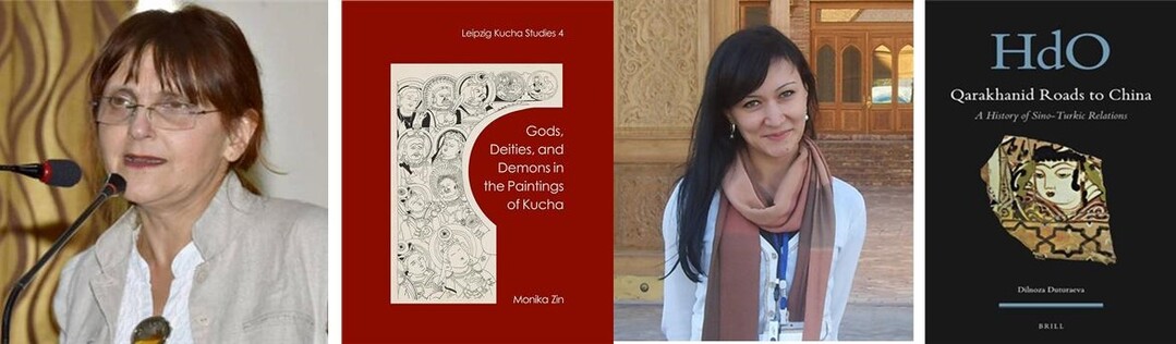 모니카 친 교수와 '쿠차의 벽화에 나타난 신, 신성, 그리고 악마들'(왼쪽), 딜노자 두투라에바 교수와 '중국으로 향하는 카라한의 길: 중국과 투르크 관계의 역사'.(오른쪽). |