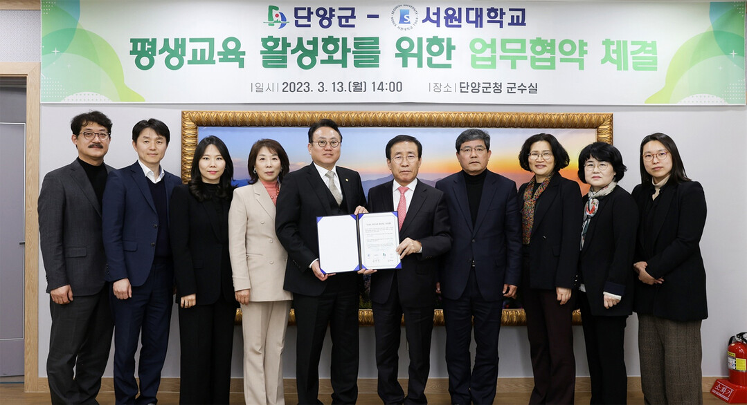서원대학교는 단양군에 ▲평생‧직업 교육 ▲지역 인재 양성 ▲이러닝 콘텐츠 제공 등을 통해 평생교육 플랫폼 구축을 지원한다.