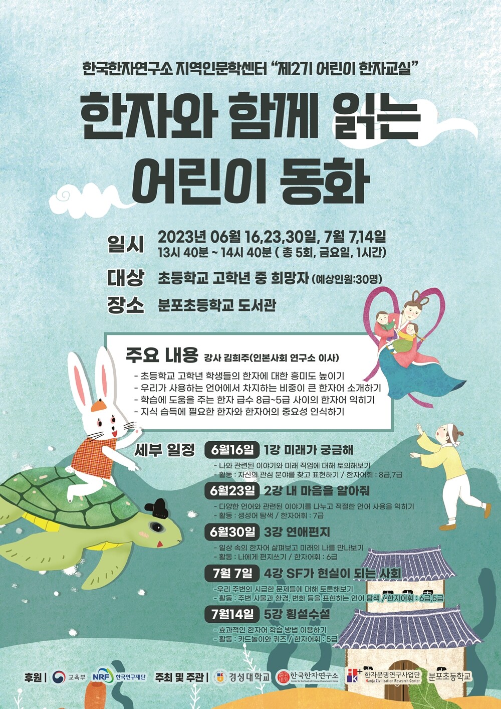 제2기 어린이 한자교실은 5개의 강좌로 구성되며, 주제는 ‘한자와 함께 읽는 어린이 동화’이다.