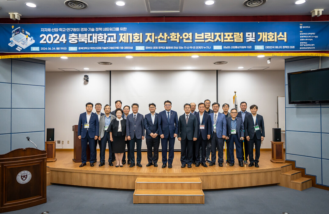 [대학저널 이선용 기자] 충북대학교가 지자체·산업체·학교·연구원 간의 종합 네트워크 구축을 위한 ‘2024 지·산·학·연 브릿지 포럼’의 개회식을 지난 6월 24일 오후 7시 충북대 학연산공동기술연구원(E9동) 1층 대회의실에서 개최했다.