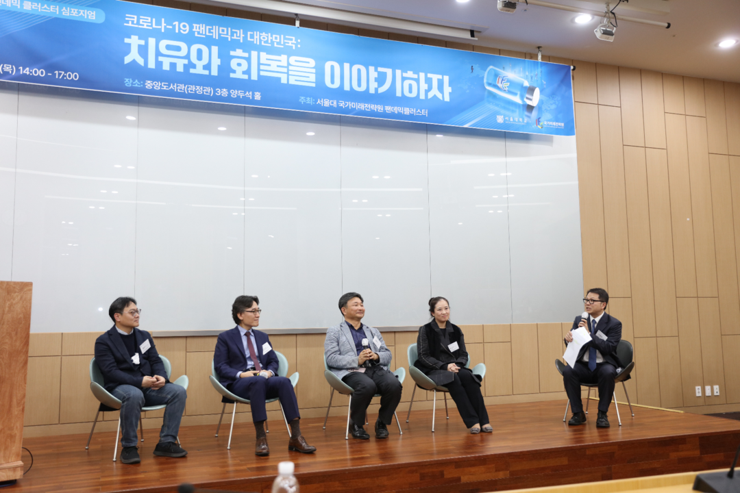 [대학저널 이선용 기자] 서울대학교 국가미래전략원 팬데믹 클러스터가 16일 중앙도서관 관정관 3층 양두석홀에서 ‘코로나 팬데믹과 대한민국: 치유와 회복을 이야기하자’를 주제로 심포지엄을 개최했다.