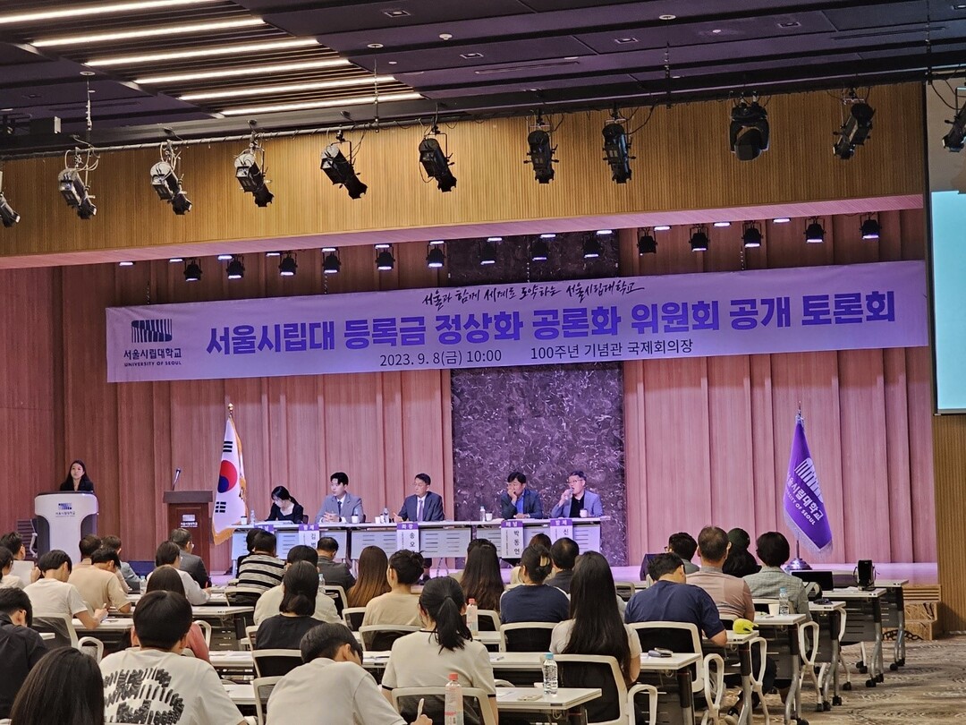 서울시립대가 ‘서울시립대학교 등록금 정상화 공론화 위원회’ 제4차 회의를 8일 100주년기념관 국제회의장에서 공개토론회로 개최했다. 사진=서울시립대 제공 |