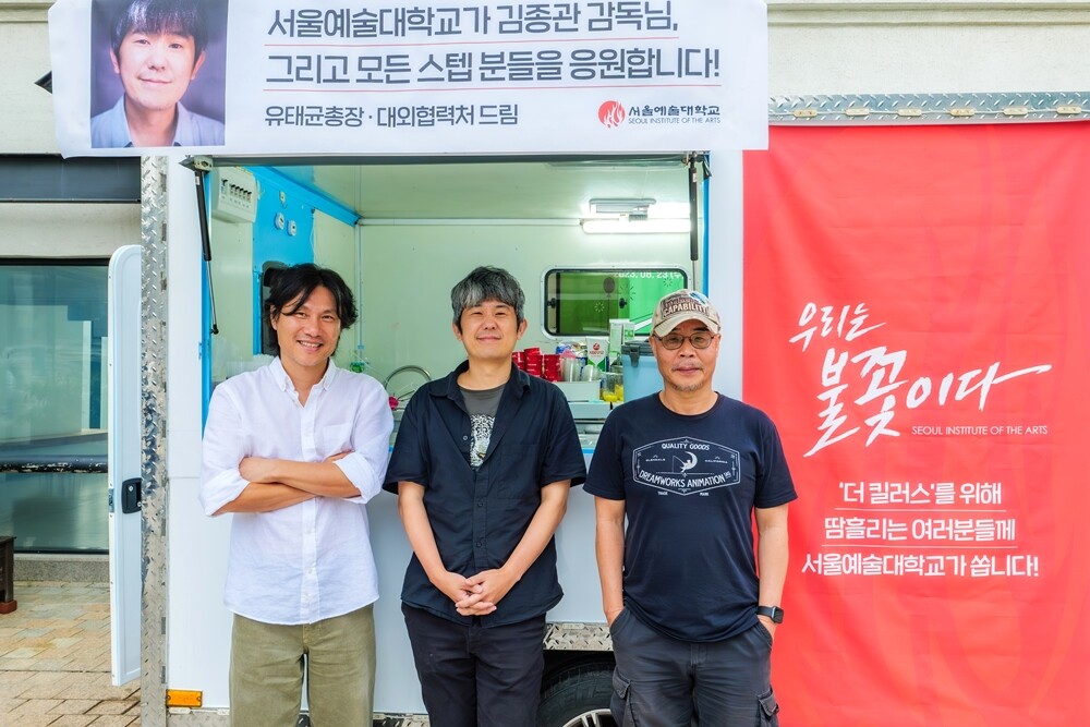 [대학저널 온종림 기자] 서울예술대학교가 김종관 감독의 단편 영화 프로젝트 '더 킬러스(가제)' 제작을 응원하기 위해 커피차를 16일 서울예대 남산캠퍼스로 보냈다. 김종관 감독은 서울예대 영화전공 출신으로, '최악의 하루', '조제' 등 독특한 감성의 영화로 사랑받는 감독이다.
