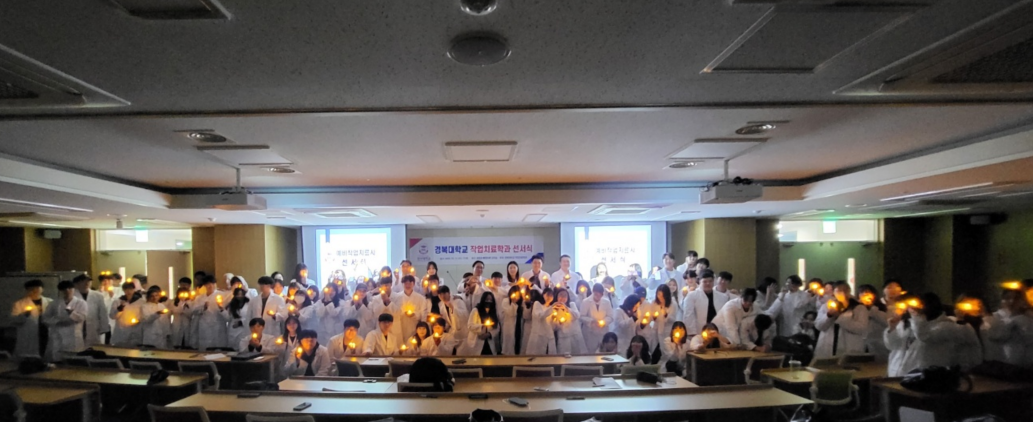 [대학저널 온종림 기자] 경복대학교 작업치료학과가 지난 11일 남양주캠퍼스 지운관에서 ‘제1회 예비작업치료사 선서식 및 가운증정식’을 개최했다. 작업치료학과 교수 7명과 2학년 재학생 106명이 참석했다.