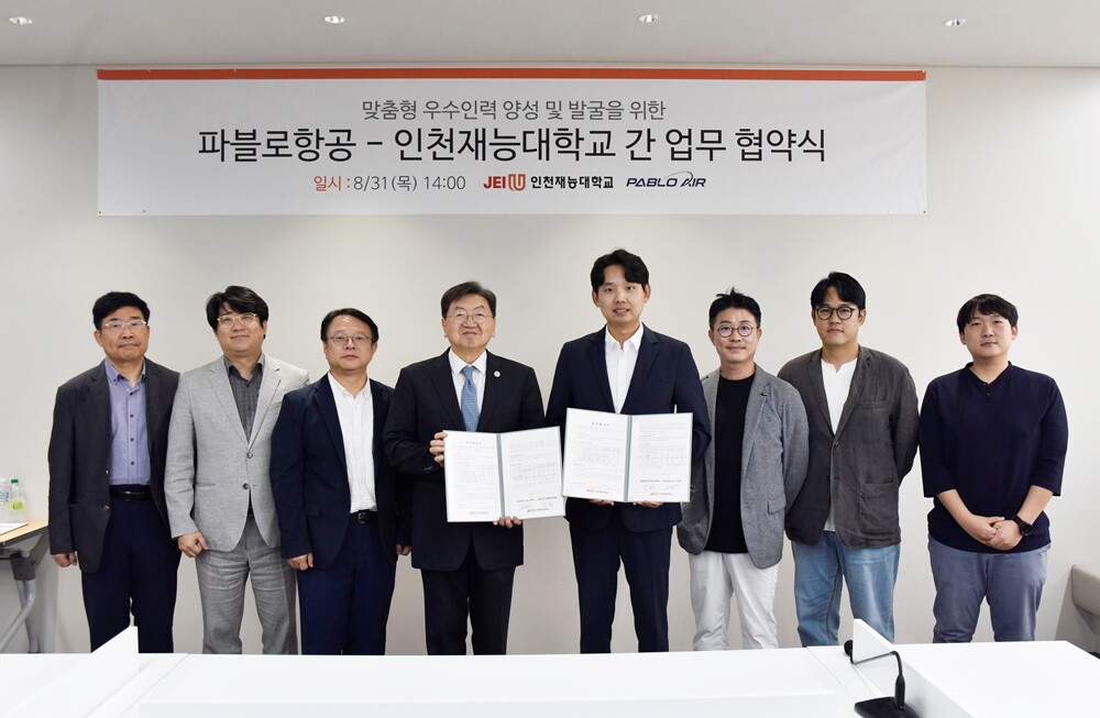 인천재능대와 (주파블로항공이 8월 31일 산학협력 협약을 체결했다. 사진=인천재능대 제공 |