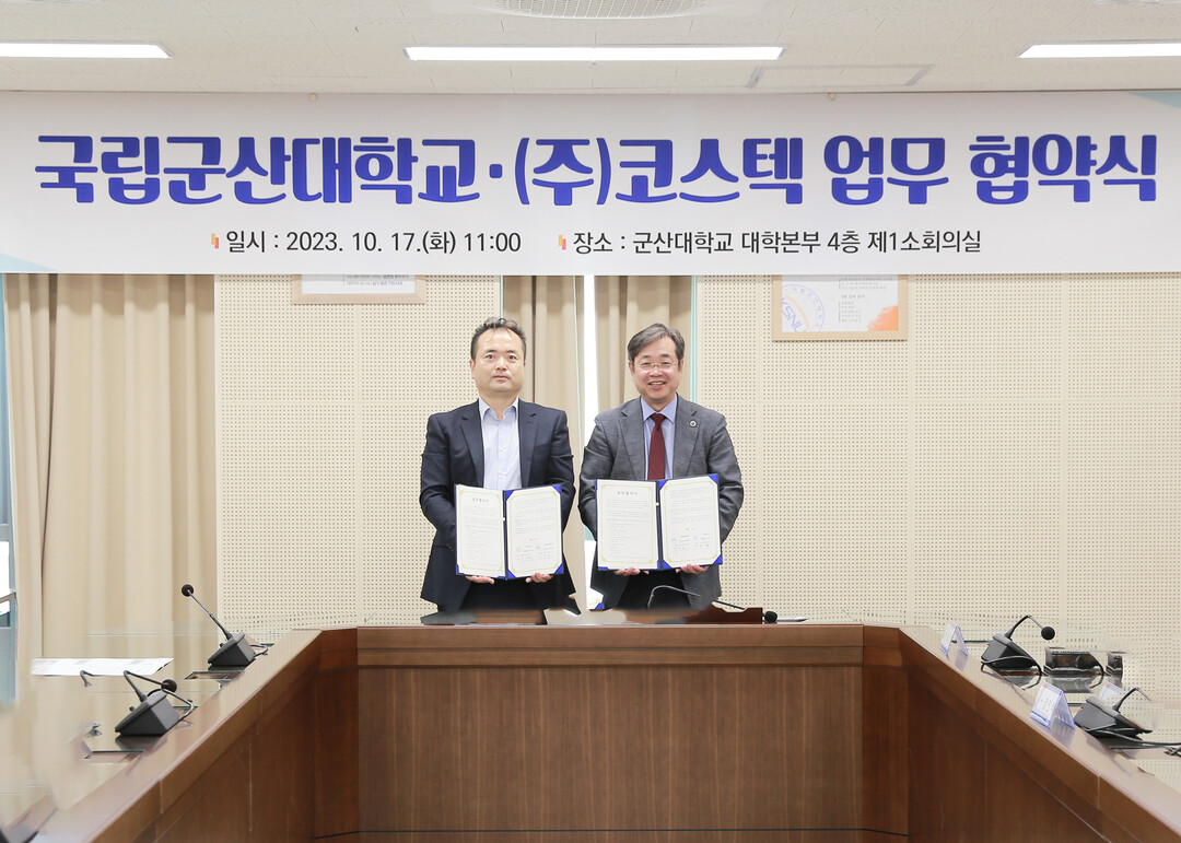 [대학저널 이선용 기자] 국립군산대학교가 17일 전기차 부품 전문기술업체인 ㈜코스텍과 기술개발 연구 프로젝트 공동 추진 등에 합의했다.