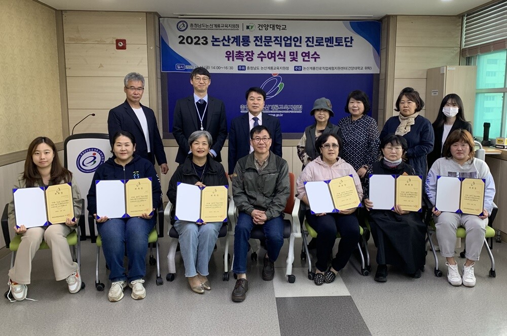 [대학저널 온종림 기자] 건양대학교가 위탁운영하고 있는 논산계룡진로직업체험지원센터가 13일 논산계룡교육지원청에서 ‘2023 논산계룡 전문직업인 진로멘토단 위촉장 수여식’ 및 연수행사를 진행했다.