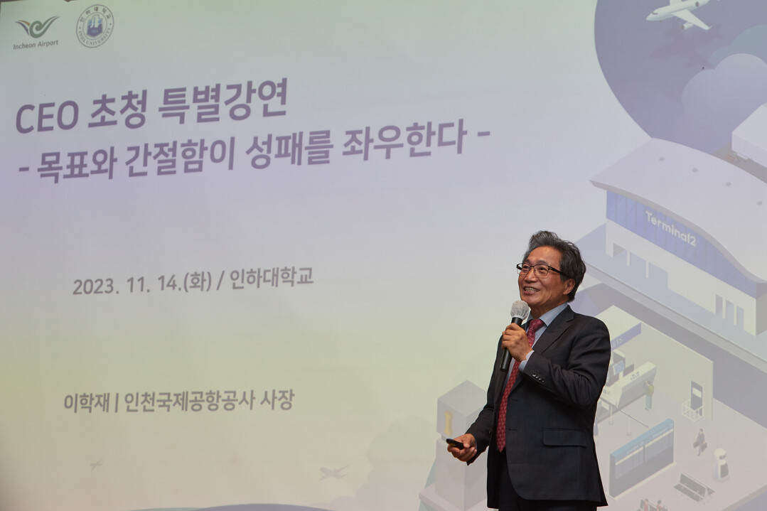 [대학저널 이선용 기자] 인하대학교가 이학재 인천국제공항공사 사장을 초청해 ‘CEO와 기업가 정신’ 특강을 진행했다.