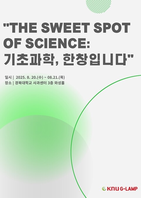 [대학저널 온종림 기자] 경북대학교 G-램프(LAMP)사업단이 20일과 21일 이틀간 경북대 농업생명과학대학 와성홀에서 중견 생명과학자 심포지엄 ‘더 스윗 스팟 오브 사이언스(The Sweet Spot of Science): 기초과학, 한창입니다’를 개최한다.