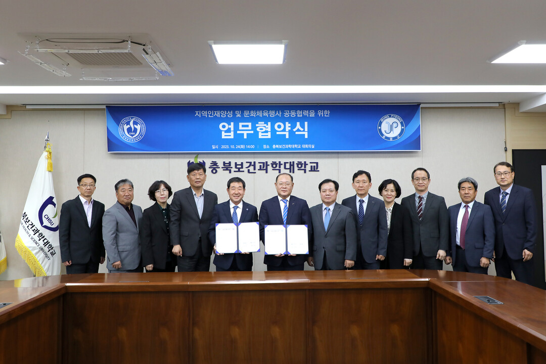 [대학저널 이선용 기자] 충북보건과학대학교가 증평군과 ‘지역인재 양성 및 문화체육행사 공동협력’을 위한 업무협약을 체결했다.